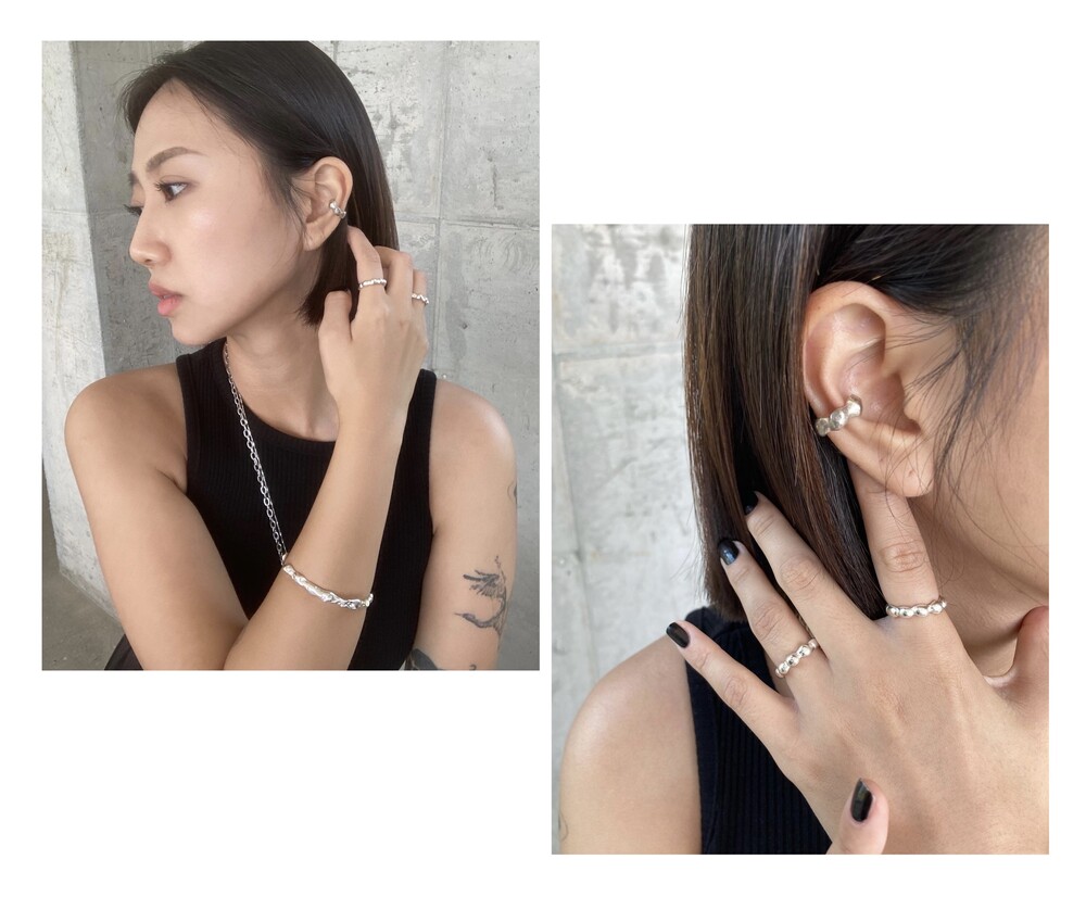 마모된 조개껍데기들이 붙어있는 듯한 볼드 한 느낌의 이어커프입니다.