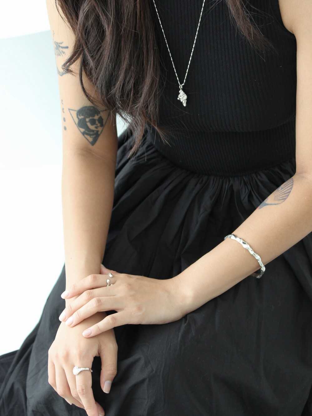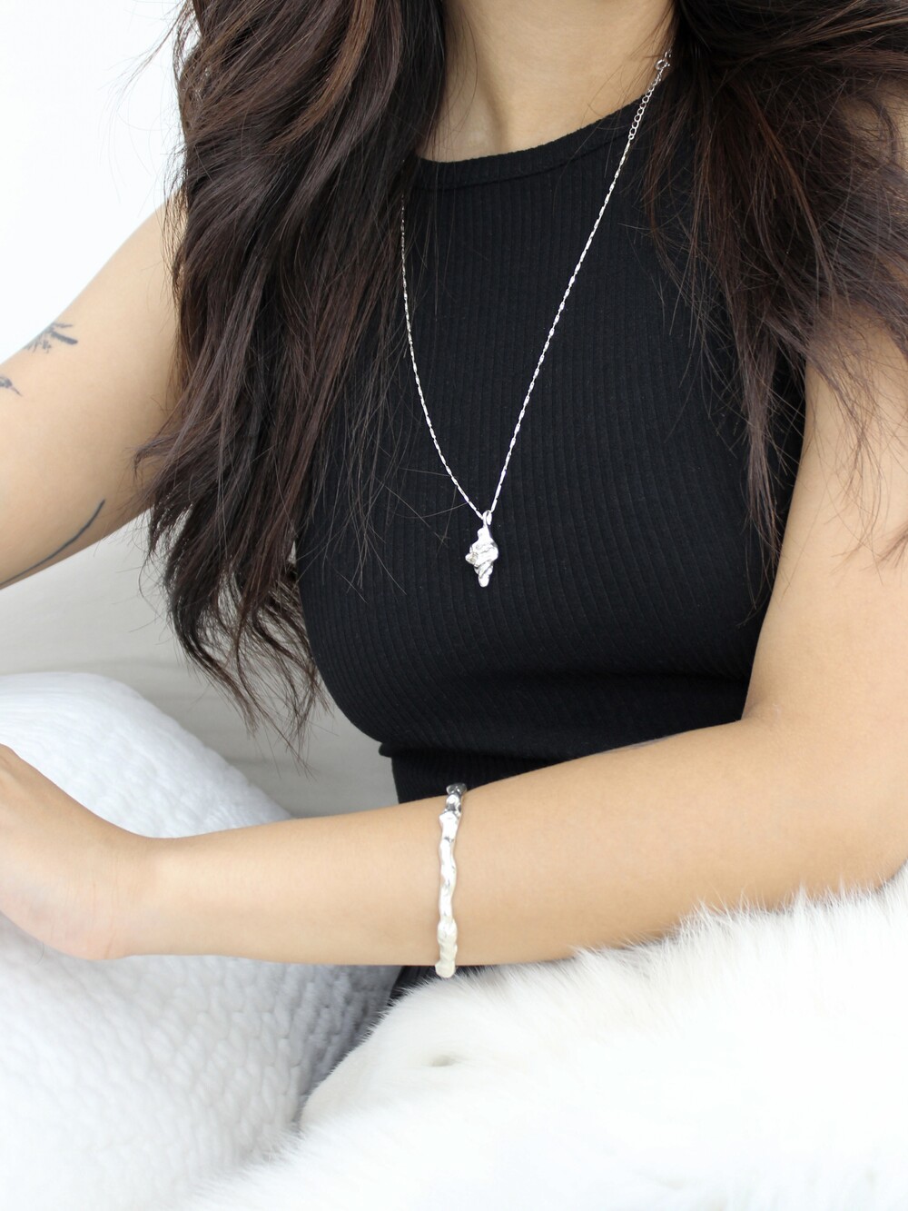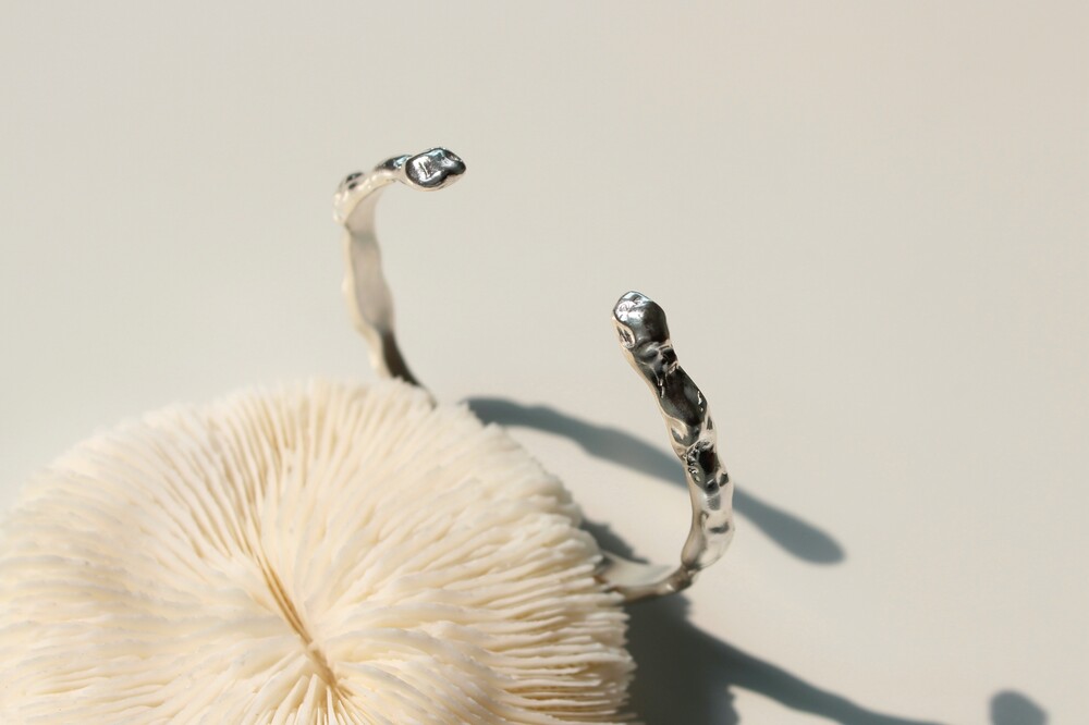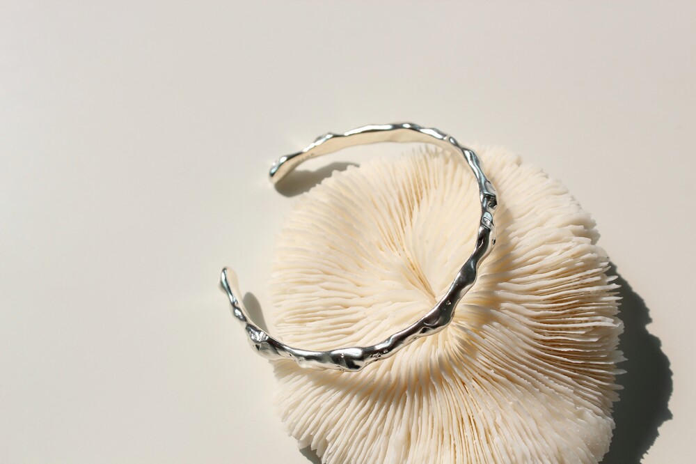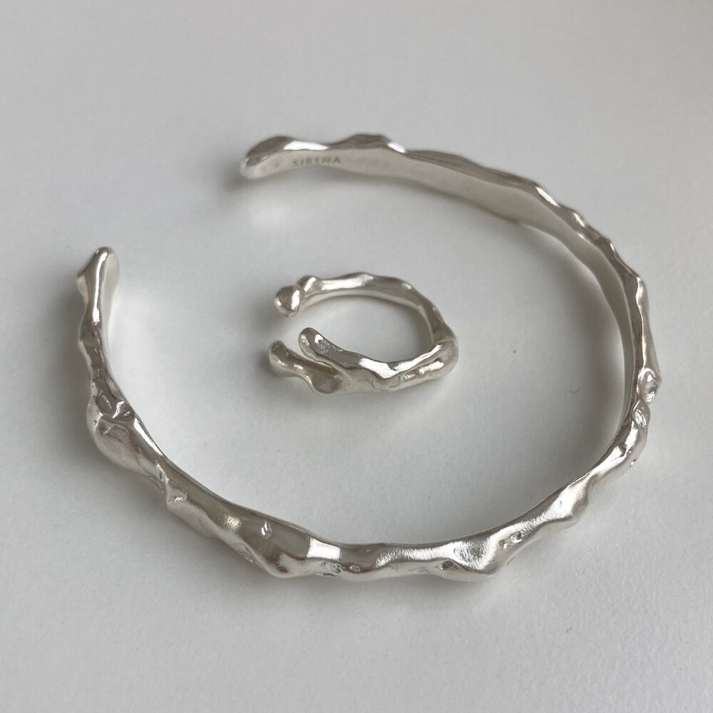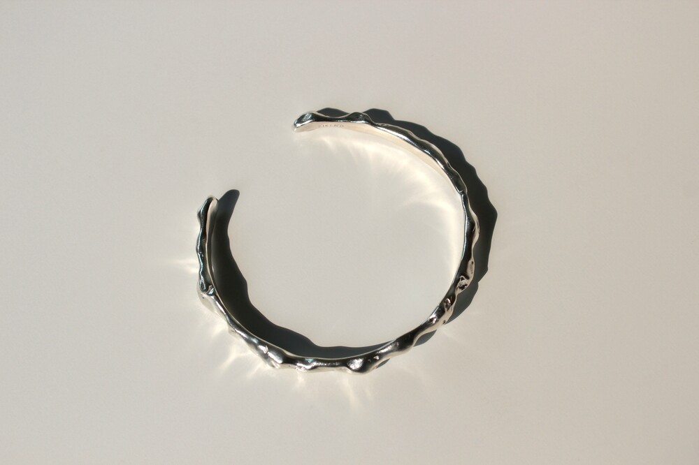 굴곡져있는 쉐입이 매력적인 볼드한 느낌의 뱅글 팔찌입니다.