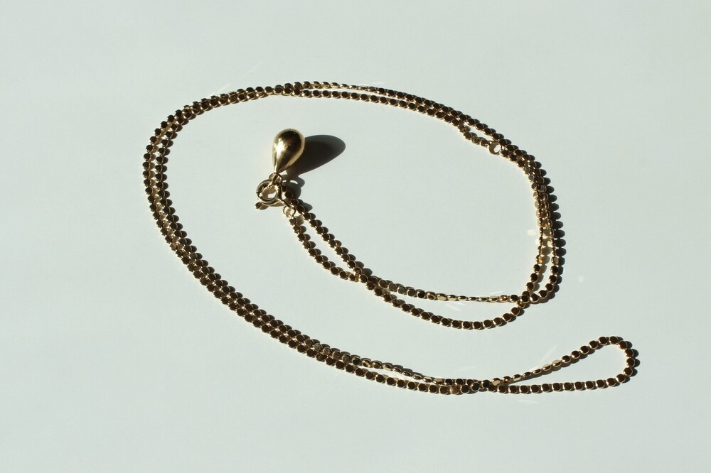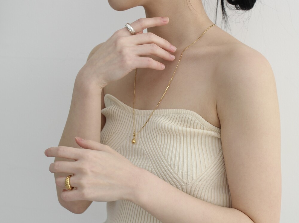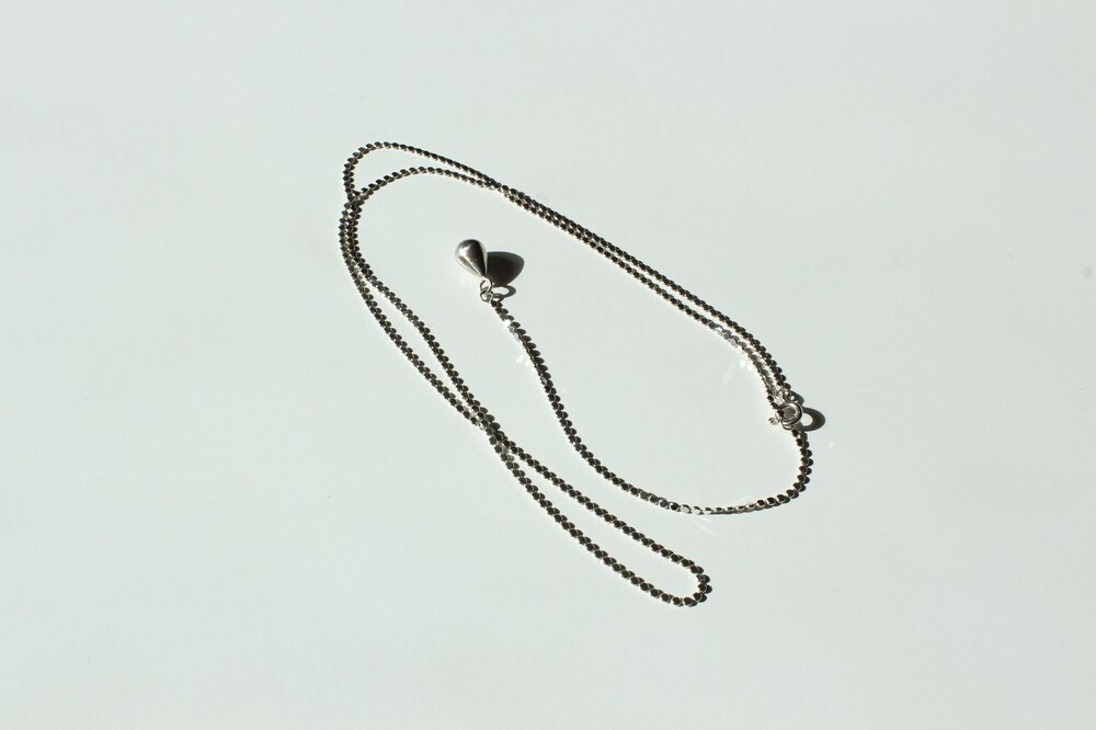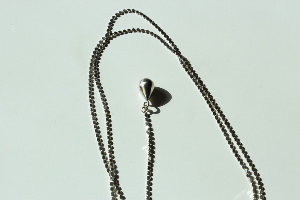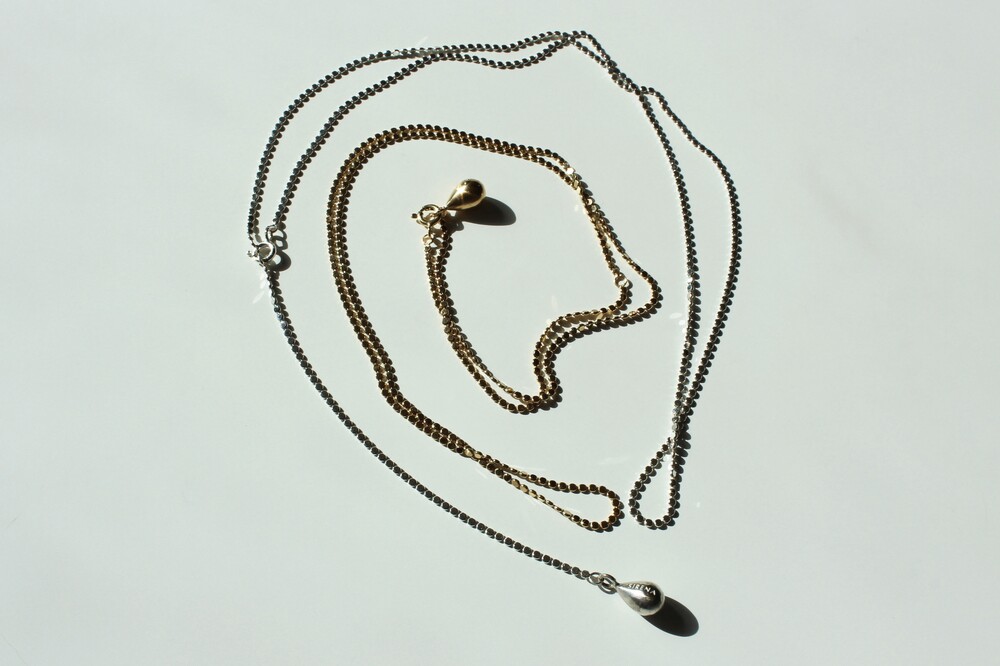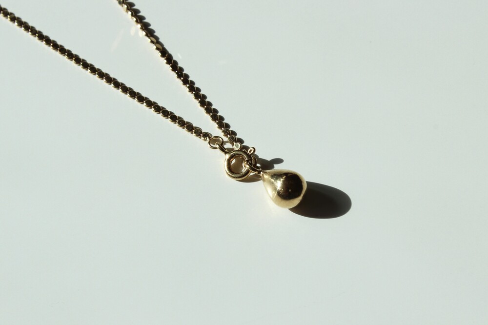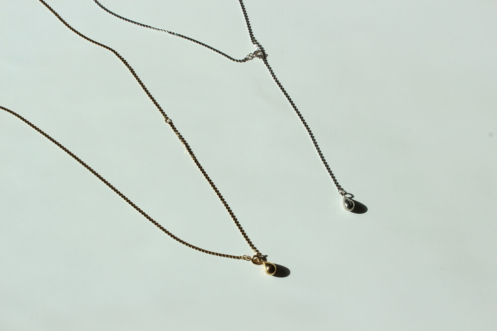 아기자기한 사이즈의 이슬 펜던트, 동글동글한 체인의 조합이 매력적이며