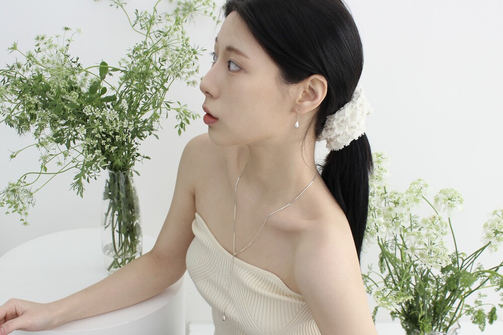 봄 새벽 잎사귀들에 맺혀있는 물방울을 떠올리며 제작한 이어링입니다.